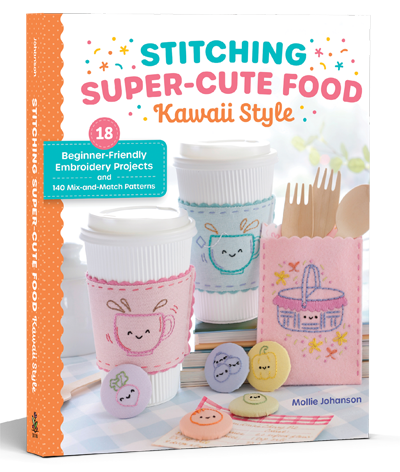 This part is totally optional, but if you're up for it, embroider the faces on the coats, crosses, and stone. I used no. 8 perle cotton in black. As usual, the faces are made with french knot eyes and scallop stitch mouths.